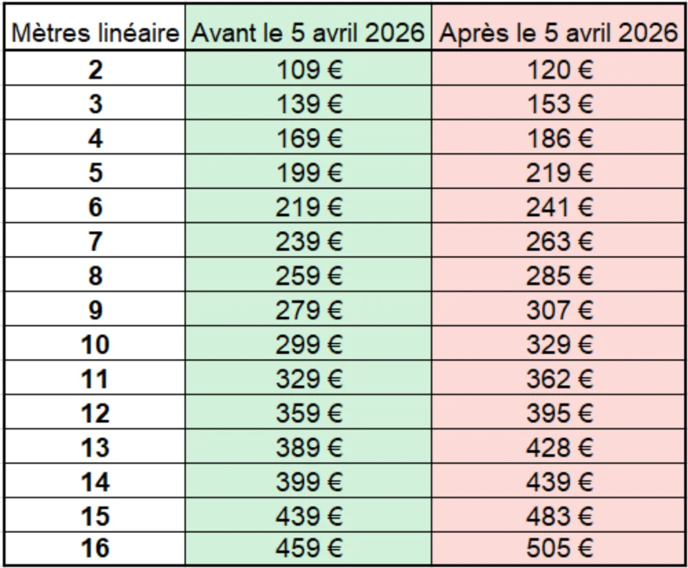 A partir du 6 avril 2026, paiement uniquement en espèces (avec majoration, voir tableau ci-dessus)